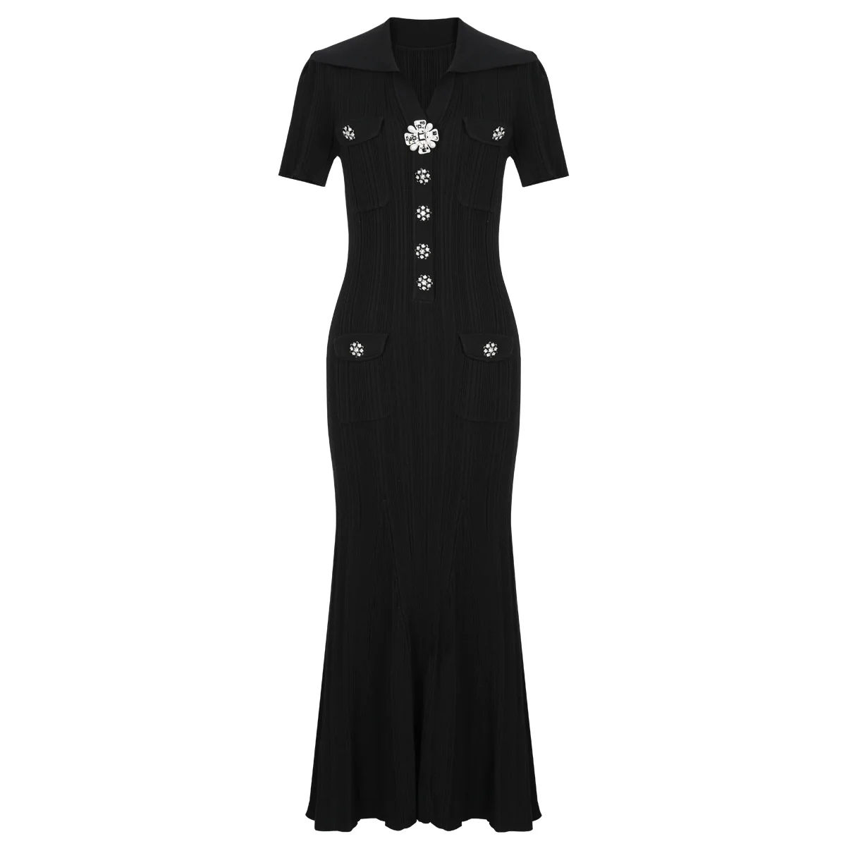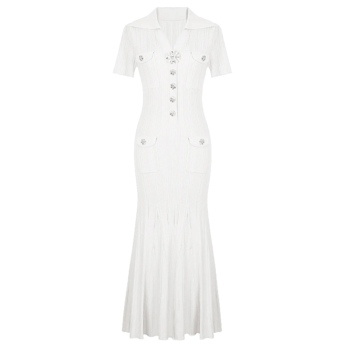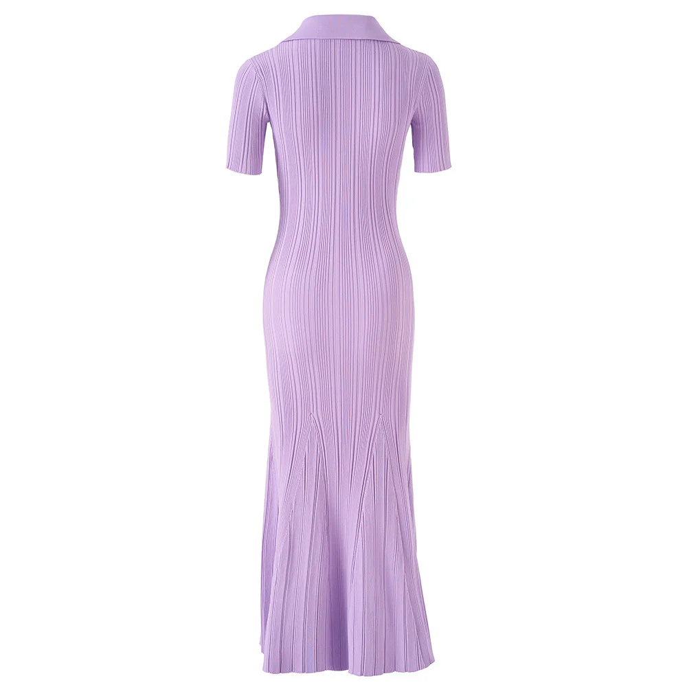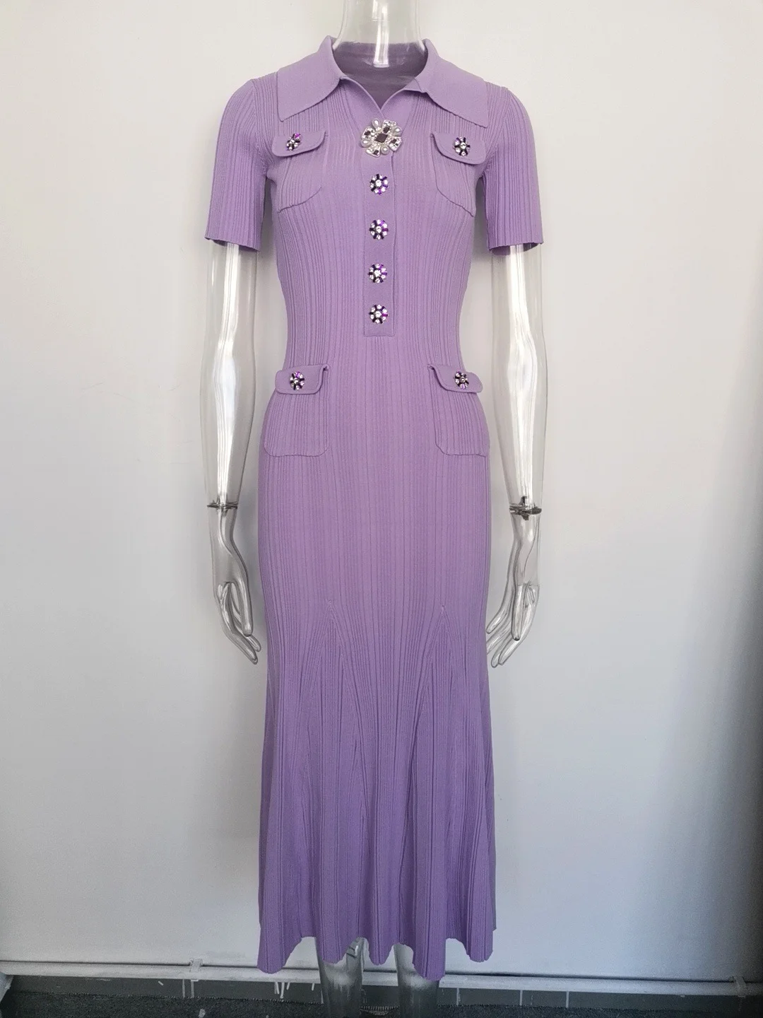 KD2498 Luxury Quality Knitting Summer Long Sleeve Women Casual Dress Knit Sweater Mermaid Maxi Dress With Crystal Button